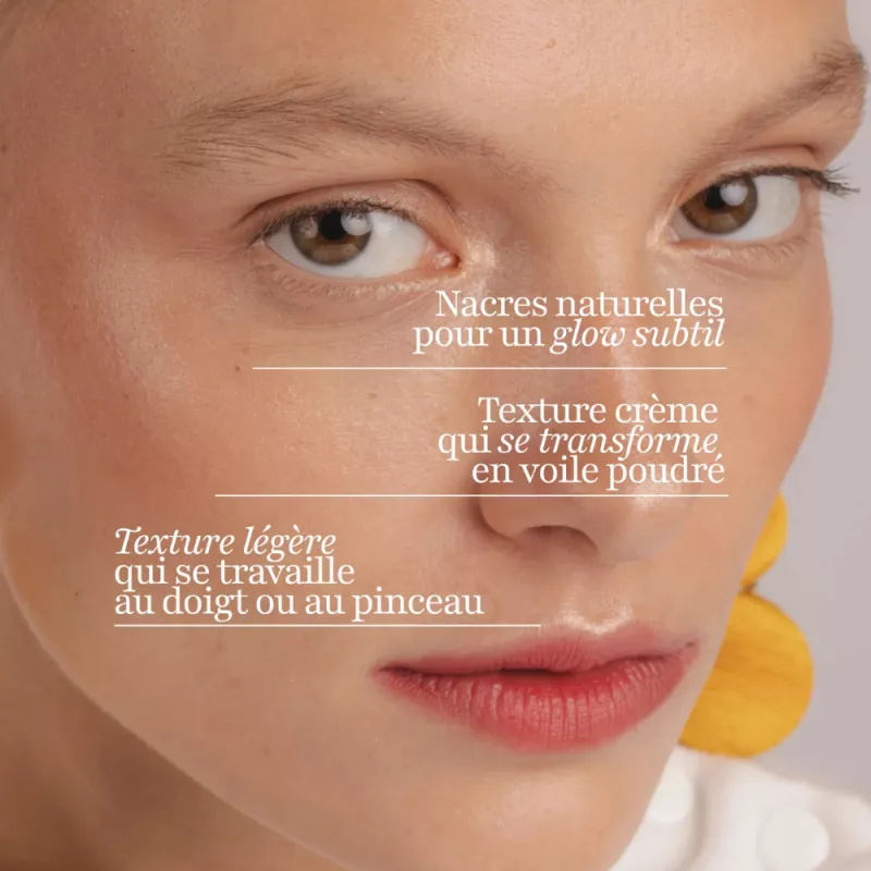 Un highlighter naturel enrichi en bio-actifs pour illuminer le teint tout en prenant soin de la peau. Sa texture crémeuse devient un voile poudré qui floute les pores et lisse visiblement le grain de peau. Un maquillage clean, sensoriel et lumineux, adapté à tous les types de peaux.