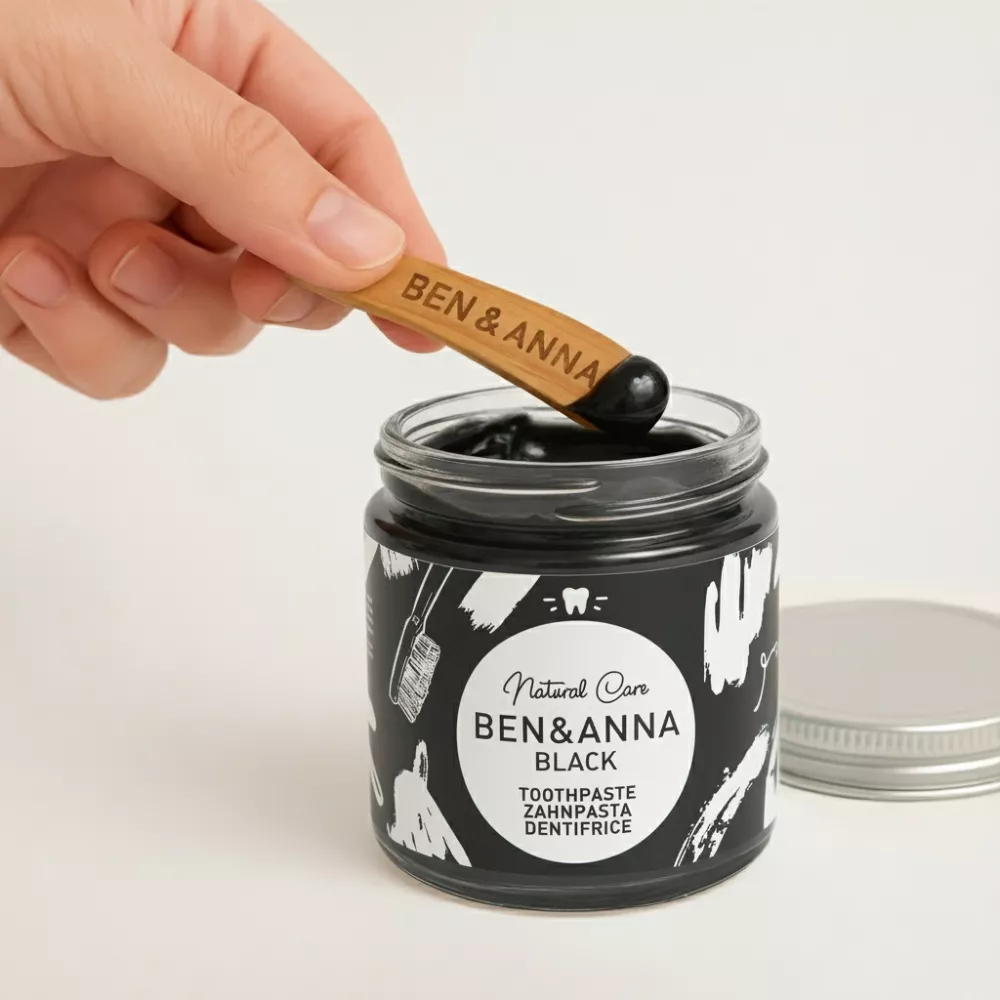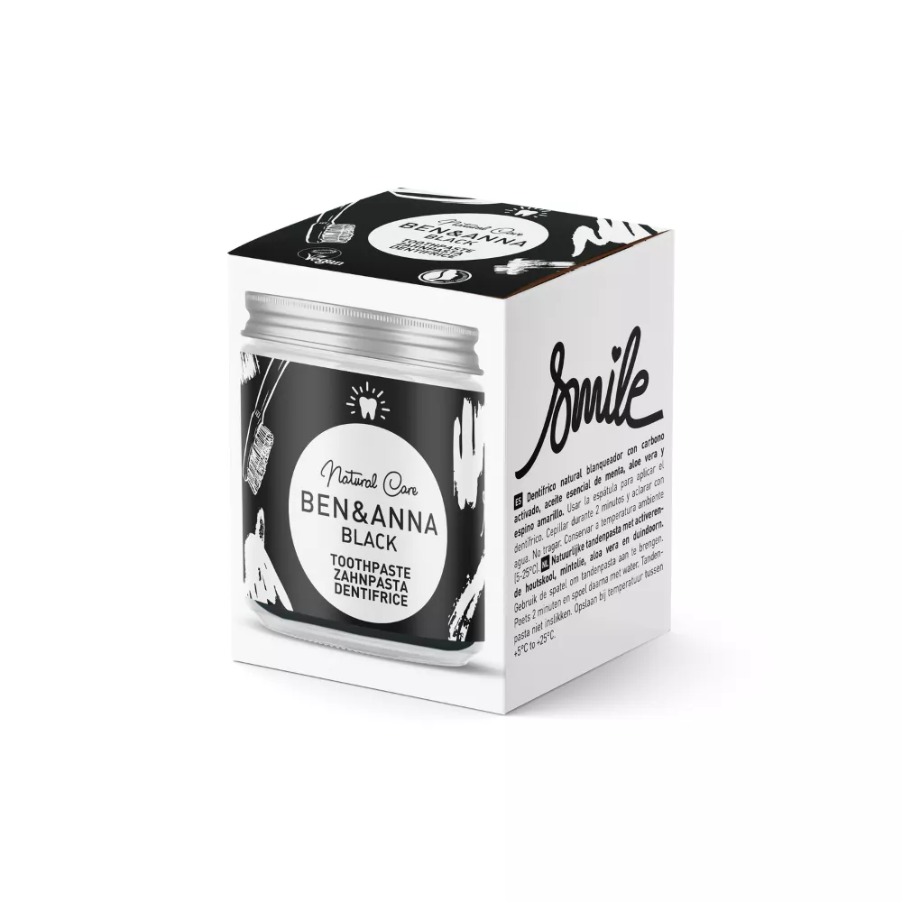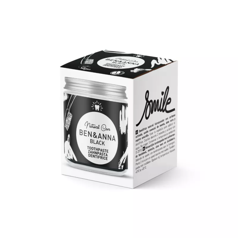Le dentifrice Black BEN & ANNA vous donne un sourire éclatant de blancheur grâce au charbon actif de bambou. L'huile essentielle de menthe rafraîchit votre haleine tandis que les extraits d'argousier et de camomille protègent vos dents.