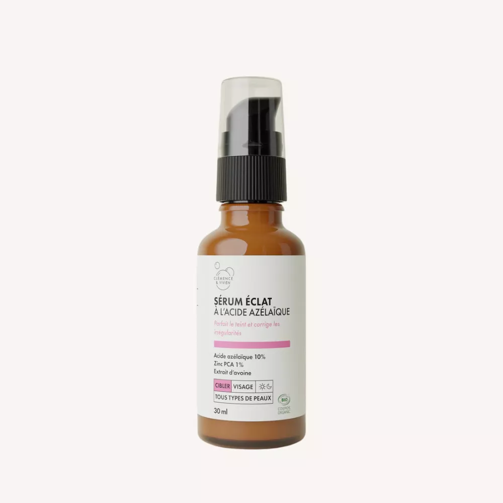 Le Sérum éclat est un perfecteur de peau conçu pour illuminer, purifier et apaiser en douceur. Les peaux normales à mixtes peuvent présenter ponctuellement des brillances, pores dilatés ou petites imperfections dues au stress, à l’environnement ou aux variations hormonales. Grâce à l’acide azélaïque (10%), au zinc PCA et à l’extrait d’avoine, ce sérum aide à lisser le grain de peau, uniformiser le teint et révéler l’éclat naturel de la peau. Jour après jour, la peau est plus nette, douce et lumineuse.