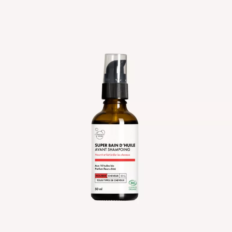 Ce bain d’huile avant shampoing 100% naturel concentre 10 huiles végétales bio pour nourrir, assouplir et lisser les cheveux. Grâce à son tensioactif doux, il s’émulsionne à l’eau et se rince en un seul geste, fini les bains d’huile impossibles à retirer. Un soin cheveux naturel vegan, clean, efficace et compatible grossesse, pour des cheveux brillants, souples et protégés.