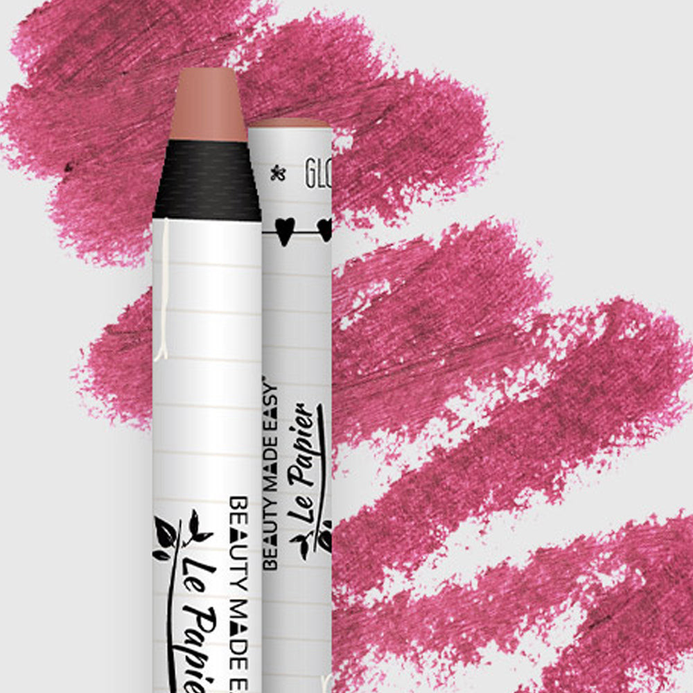 Les rouges à lèvres naturels vegan Glossy Nudes Le Papier donnent à vos lèvres des nuances durables et fraîches avec une légère brillance dans les tons roses foncés. Les propriétés soignantes de l'huile de jojoba, de l'huile de noix de coco et du beurre de karité garantissent des lèvres toutes douces tout au long de la journée sans se dessécher. Totalement zéro déchet, une fois le rouge à lèvres terminé, vous avez consommé également l'emballage !