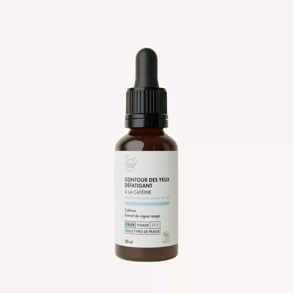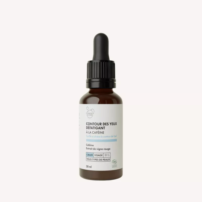 Ce contour des yeux naturel vegan et made in France réveille le regard grâce à un trio efficace : caféine, hydrolat de bleuet et extrait de vigne rouge. Il draine, tonifie et atténue cernes, poches et signes de fatigue. Sa texture légère hydrate et lisse les ridules pour un regard plus lumineux.